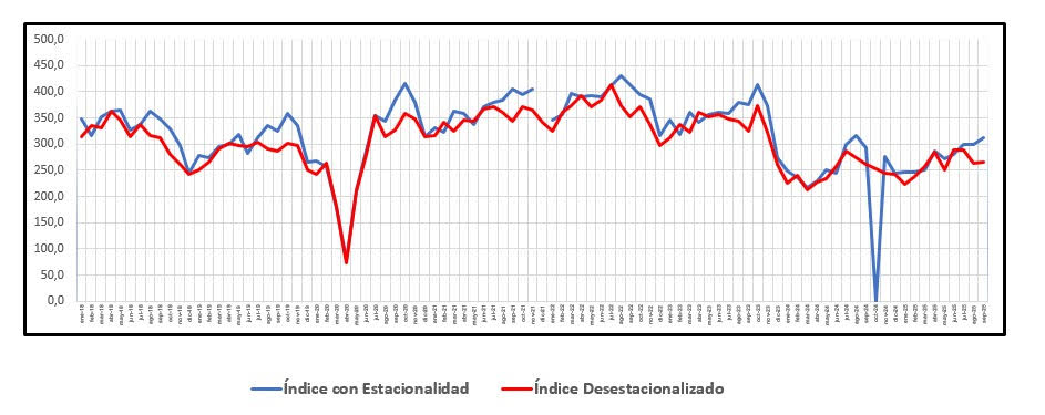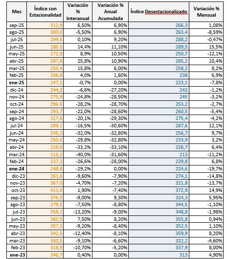 Cabe aclarar que este índice corresponde al mes de septiembre 2025, mientras que el ISAC, publicado recientemente por el INDEC, mide la actividad de la construcción hasta agosto 2025, por lo que no son comparables.