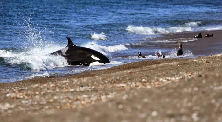 Lo que hace verdaderamente especial a este destino es la famosa técnica de “varamiento intencional”, un comportamiento de caza extraordinario que las orcas desarrollaron en estas costas.